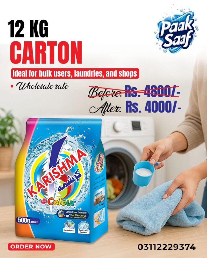 Karishma Surf Quick Wash Detergent Powder – 12 kg is the ultimate solution for large households, commercial laundry needs, or anyone who wants long-term convenience without compromising on cleaning performance. Its advanced quick wash formula penetrates deep into fabrics, removing tough stains and dirt while keeping clothes bright, soft, and fresh after every wash.